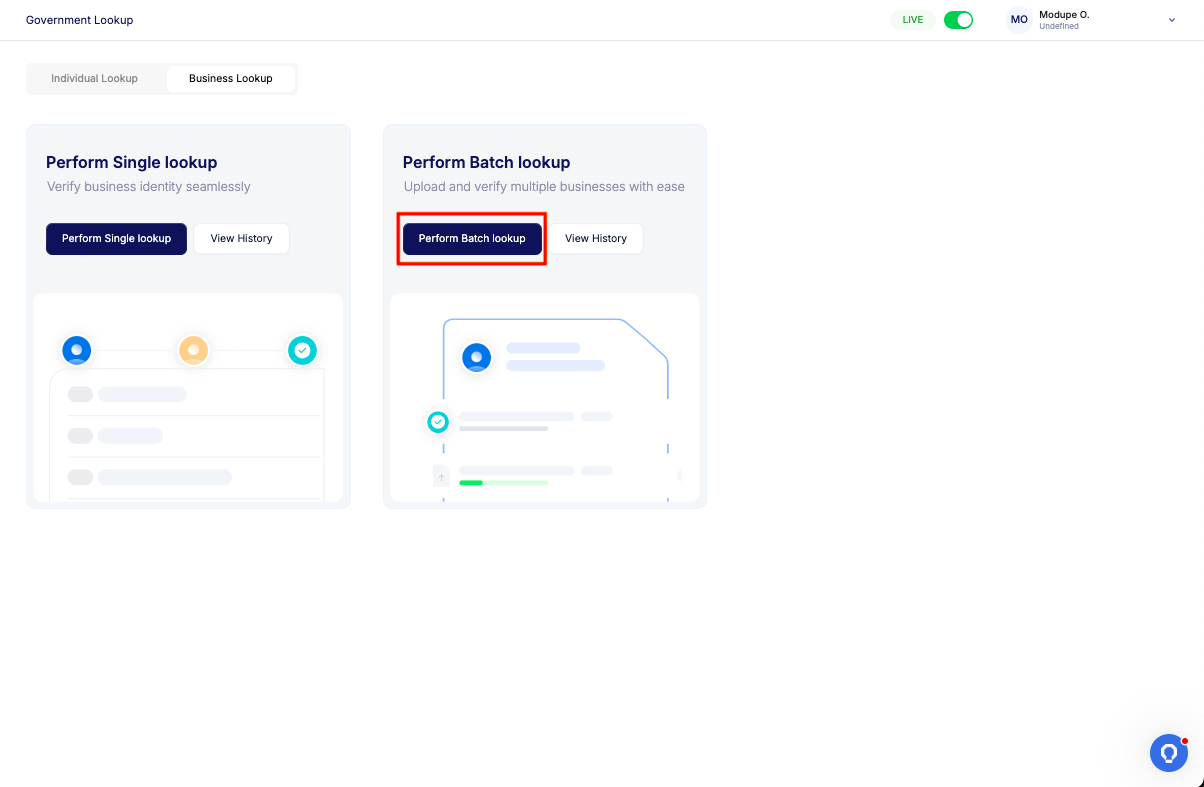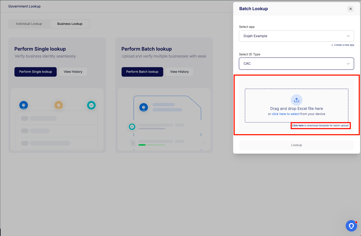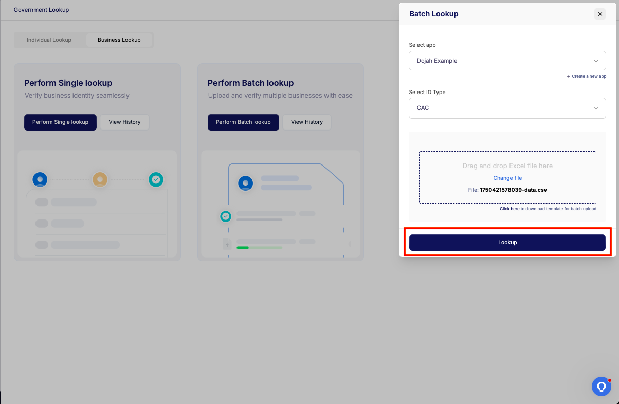 The Batch Business Lookup helps teams verify several businesses at once by uploading their details using a template.Steps to Perform a Batch Lookup: