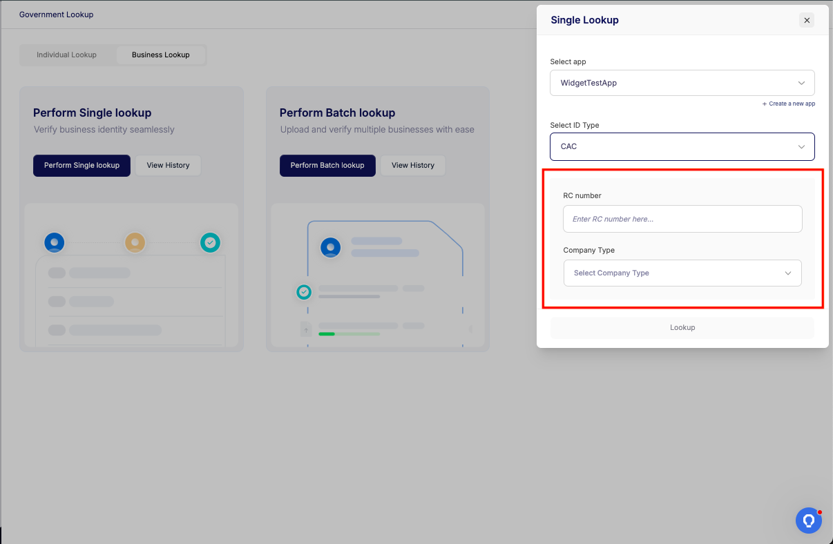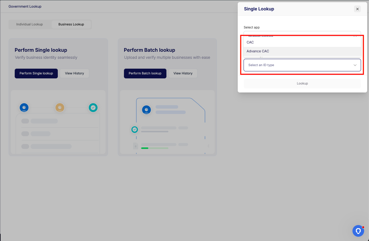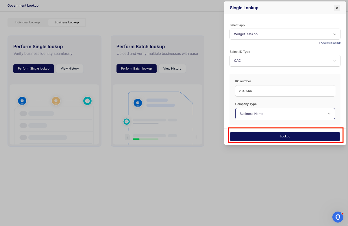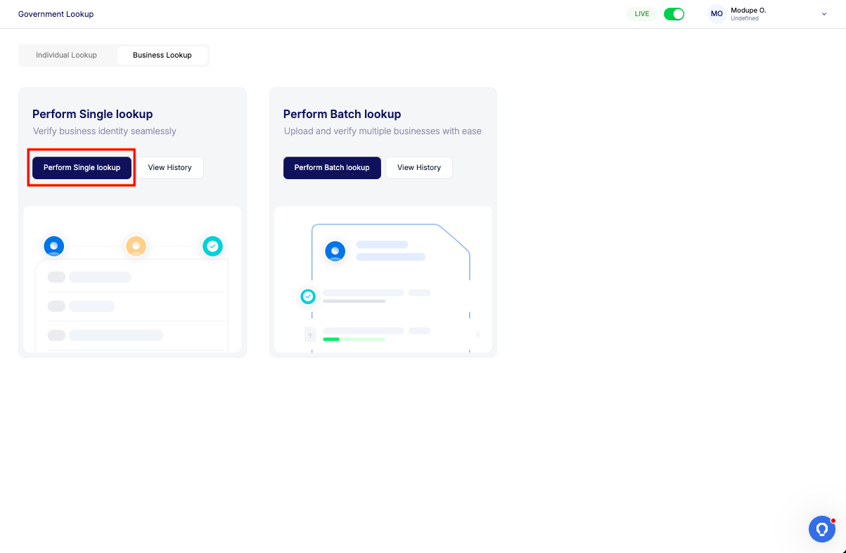 The Single Business Lookup allows users to perform a real-time check on an individual business entity using its registration details.Steps to Perform a Single Lookup:
